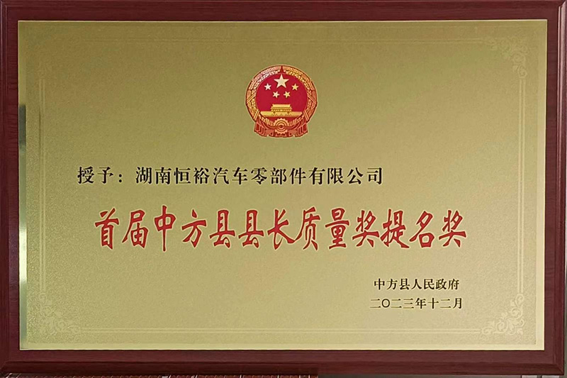 首届中方县县长质量奖提名奖